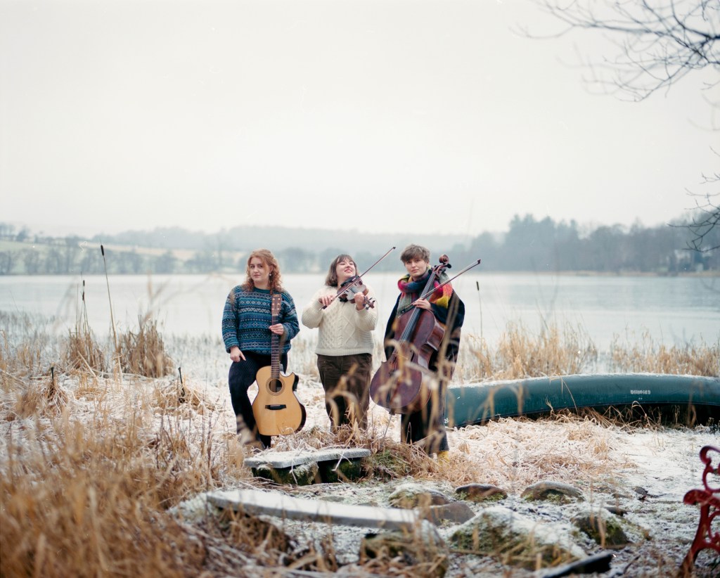 An exciting, innovative new trio consisting of Juliette Lemoine (cello), Madeleine Stewart (fiddle), and Heather Cartwright (guitar/vocals). The band weave songs, tunes and harmonies across cello, fiddle and guitar, creating lush, intricate pieces. Their music is drawn from their shared love of Scottish traditional music, though each musician brings her own interpretation through different musical backgrounds. Juliette plays trad/jazz fusion in her own band and studied classical music, Heather sings her own songs as well as traditional ones and plays fingerstyle guitar/folk music, and Madeleine plays in a trad/classical string quartet and has been playing traditional fiddle music since childhood. Each of the trio has been making her mark in the UK music scene individually, and they are now joining forces to form Swinging on Birches.